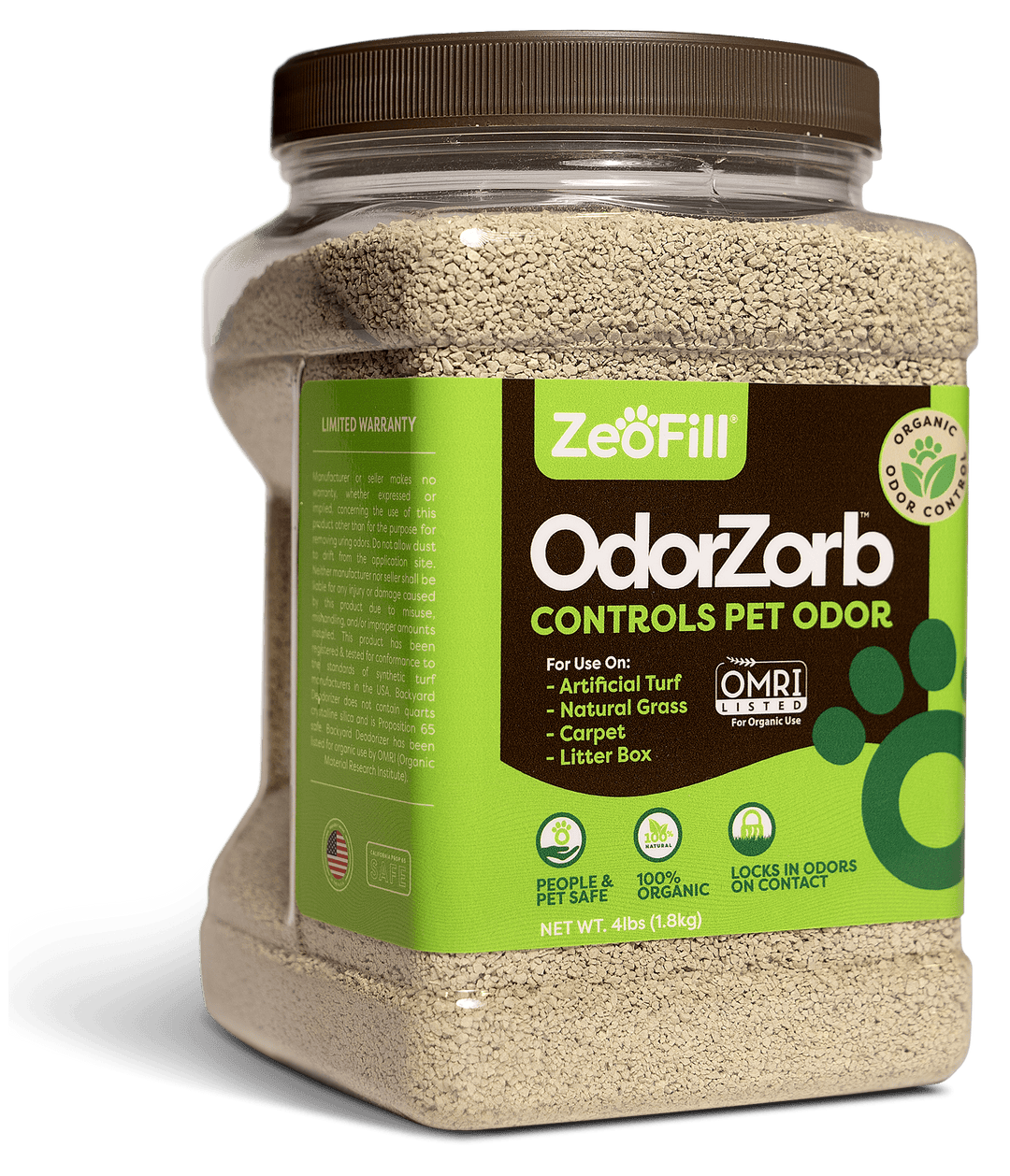 OdorZorb Pet Turf Infill & Deodorizer is the natural way to keep artificial grass odor-free and up to 30°F cooler. Made from premium zeolite minerals, OdorZorb absorbs pet urine and feces odors at the source while reducing turf surface temperatures for safer, more comfortable play.